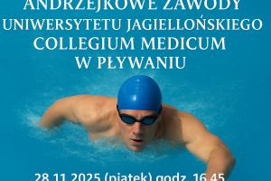 Lubisz pływać? Chcesz sprawdzić swoje możliwości w sportowej atmosferze? Zapraszamy na Andrzejkowe Zawody Pływackie UJ CM! Kryta Pływalnia UEK, ul. Rakowicka 27, Kraków 28 listopada 2025 (piątek), start o godz. 16:45 Startować mogą studenci–zawodnicy, amatorzy, absolwenci i pracownicy UJ CM oraz studenci SMO! Każdy ma prawo do 2 startów indywidualnych + sztafety! Zapisz się już dziś! Rejestracja odbywa się mailowo na adres: zbigniew.birnbaum@uj.edu.pl W zgłoszeniu podaj: imię, nazwisko, […]